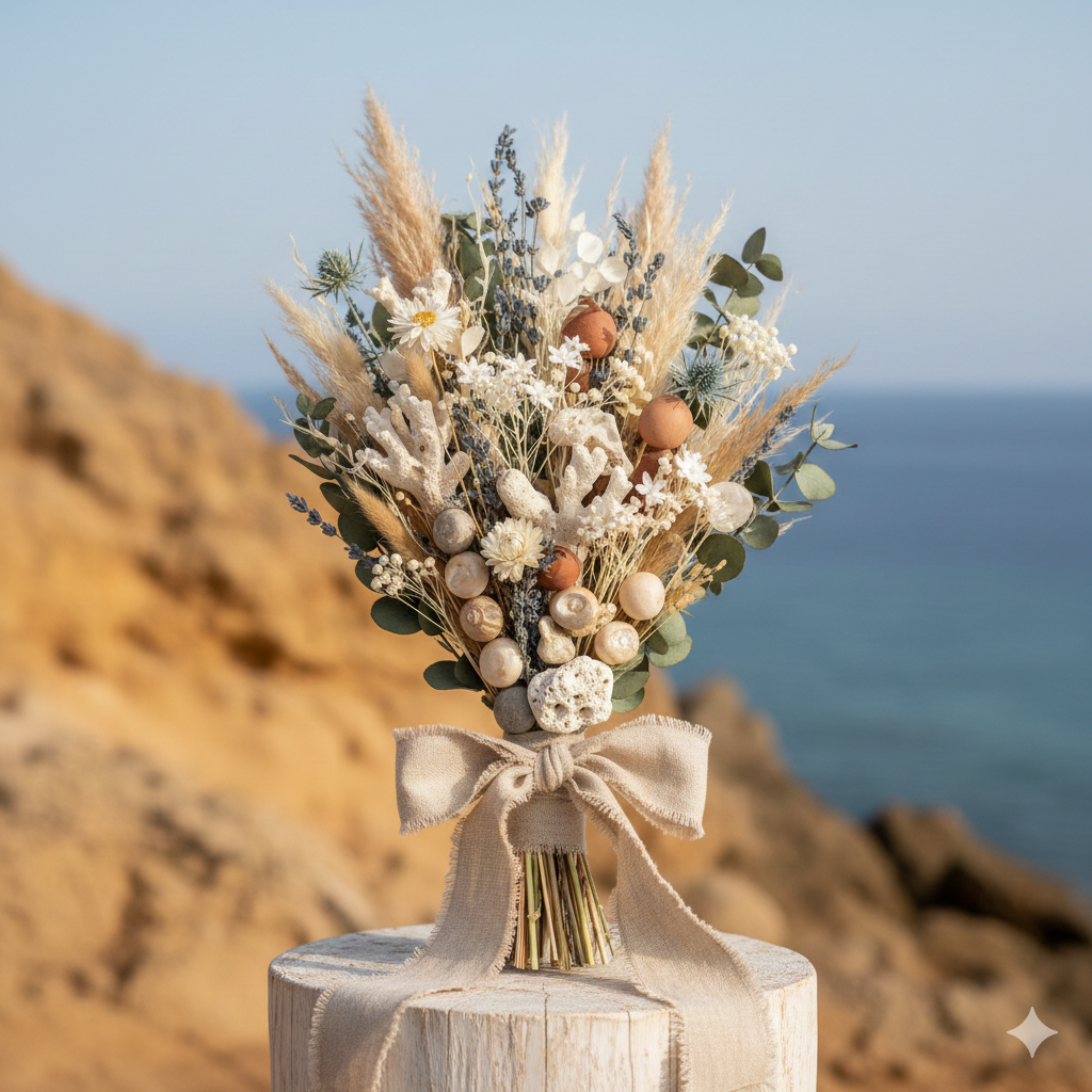 Nuestra pasión por las playas de Cabo de Gata y la naturaleza de su desierto nos llevó a crear una tienda donde cada pieza cuenta una historia. Desde ramos de flores secas cuidadosamente preservadas hasta joyas inspiradas en conchas, corales y tonalidades marinas, buscamos transmitir esa calma y conexión que nos brinda este paraíso en cada una de nuestras piezas.