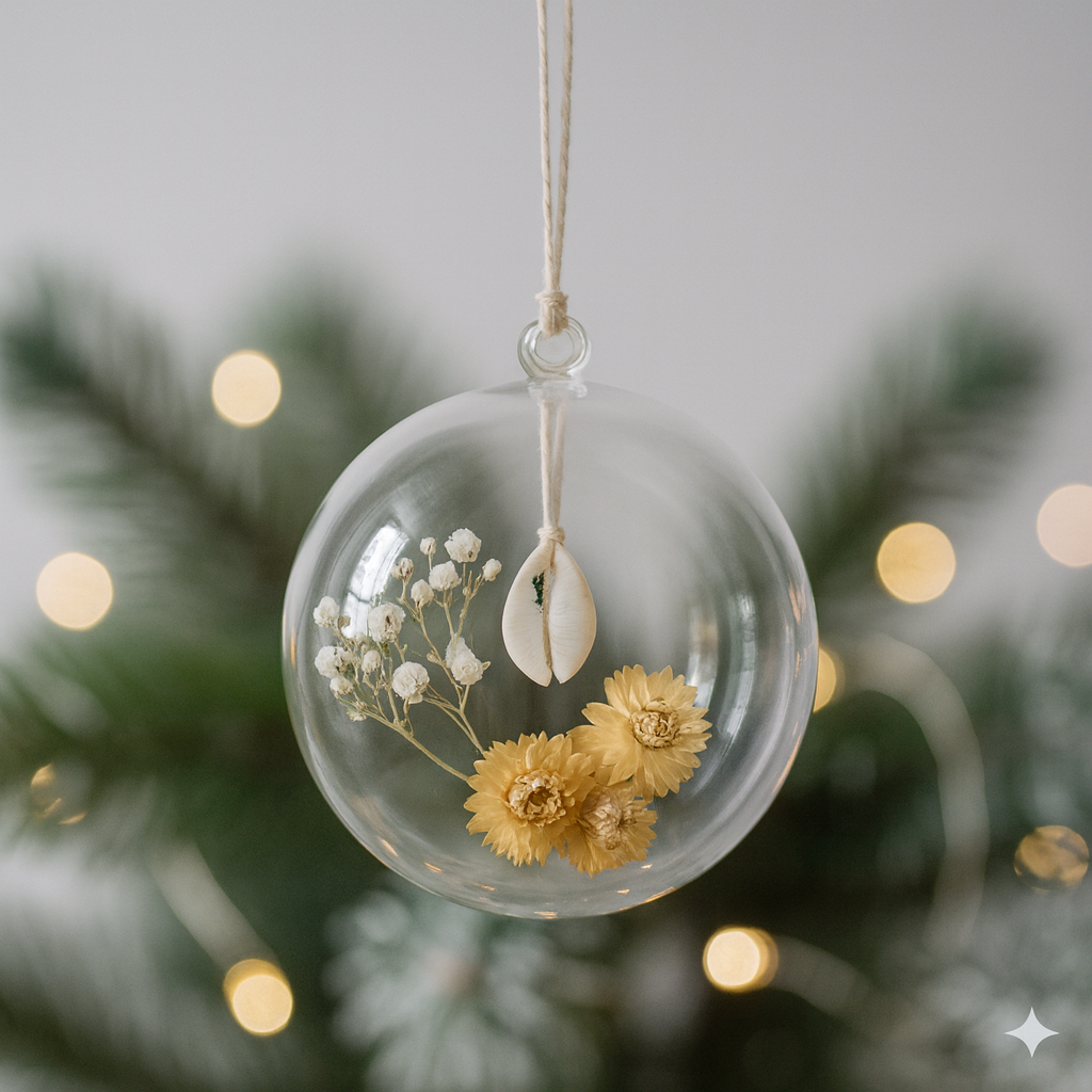 El cristal transparente actúa como una burbuja de aire puro, evocando la claridad del Mediterráneo en invierno. En su interior, la pureza minimalista de la Paniculata evoca la espuma blanca de las olas, junto a las delicadas Siemprevivas color arena, que recuerdan la calidez de las dunas.
